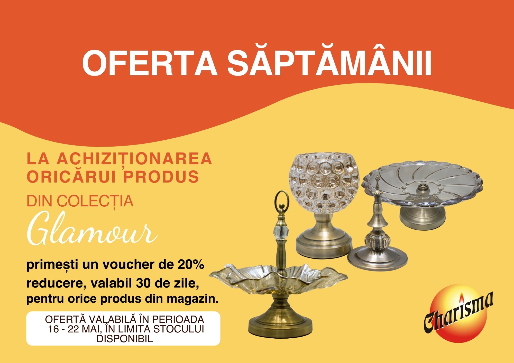 Tot ce trebuie să faci este să achiziționezi o fructieră sau o bombonieră din Colecția Glamour si vei primi un voucher cadou.