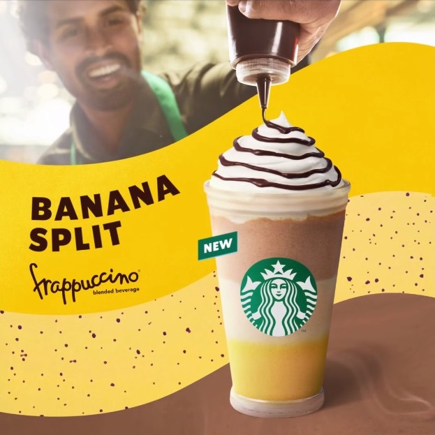 Cea mai nouă adiție a meniului de vară, Banana Split Frappuccino, e acum în cafeneaua Starbucks din Mercur Center!