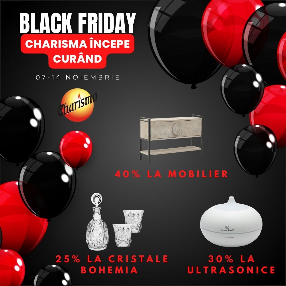 Da, ai ghicit! Este vorba de 𝗕𝗹𝗮𝗰𝗸 𝗙𝗿𝗶𝗱𝗮𝘆, iar anul acesta magazinul Charisma din Mercur Center ti-a pregătit 𝒓𝒆𝒅𝒖𝒄𝒆𝒓𝒊 𝒍𝒂 𝒕𝒐𝒂𝒕𝒆 𝒑𝒓𝒐𝒅𝒖𝒔𝒆𝒍𝒆 𝒕𝒂𝒍𝒆 𝒇𝒂𝒗𝒐𝒓𝒊𝒕𝒆!