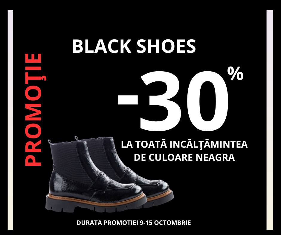 Reducere de 30% la toată încălțămintea de culoare NEAGRĂ din colecția de Toamnă-Iarnă.