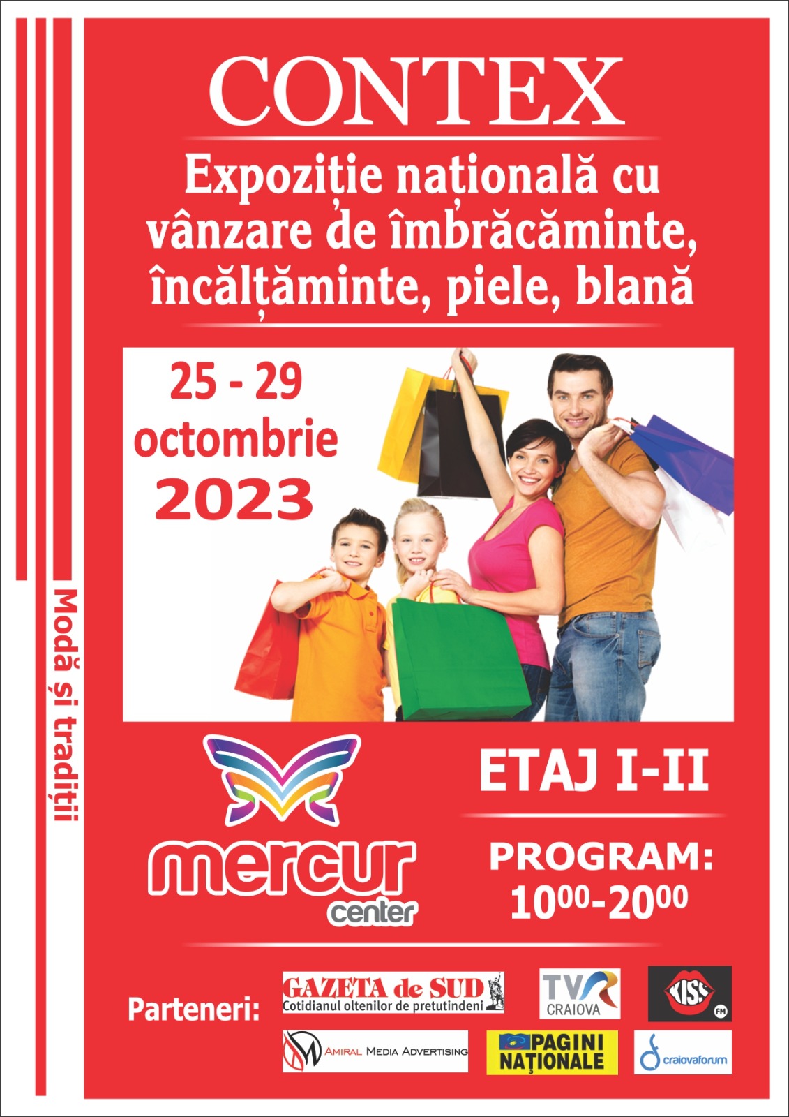 𝟮𝟱-𝟮𝟵 𝗼𝗰𝘁𝗼𝗺𝗯𝗿𝗶𝗲 Mercur Center, 𝗲𝘁𝗮𝗷 𝗜-𝗜𝗜, 𝗼𝗿𝗲𝗹𝗲 𝟭𝟬:𝟬𝟬 - 𝟮𝟬:𝟬𝟬. Hai să descoperi ultimele tendințe în materie de îmbrăcăminte și încălțăminte.