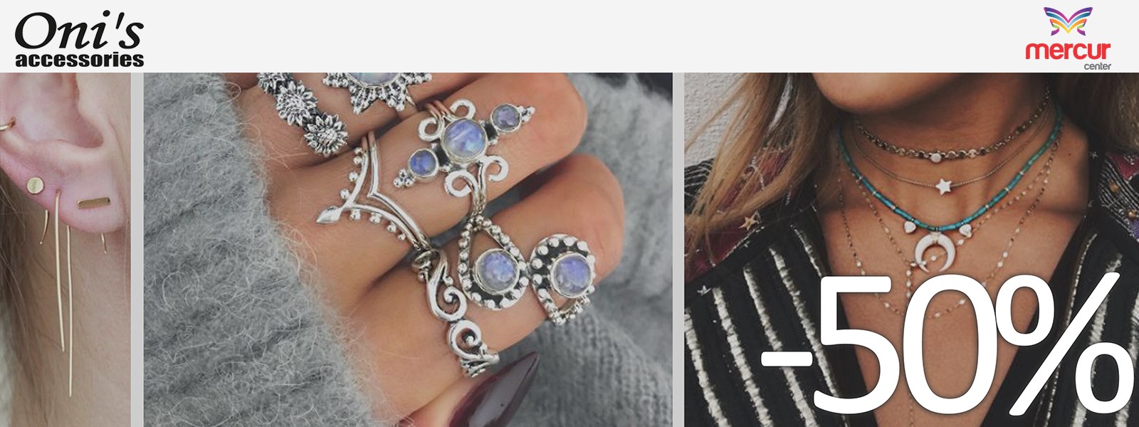 În perioada 15.01.2017 - 28.02.2017, magazinul Oni;s accessories din Mercur Center, vă aşteaptă cu reduceri de până la 50% la o gamă variată de bijuterii şi accesorii.