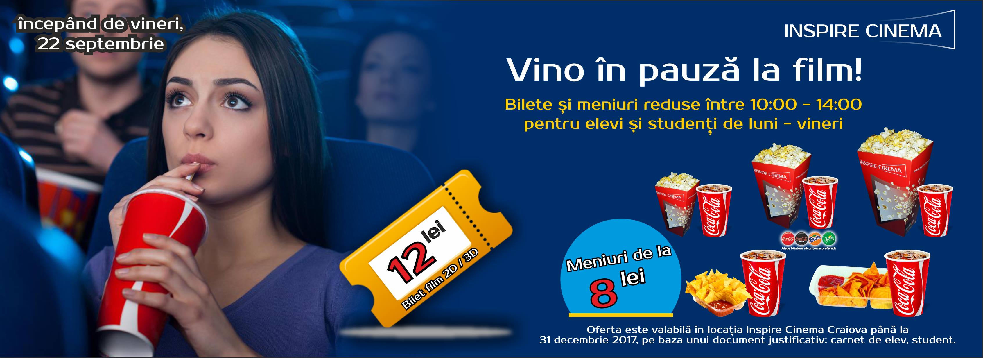 Incepand de vineri, 22 septembrie, daca esti elev sau student, te asteptam in pauza la film la Inspire Cinema Mercur Center!