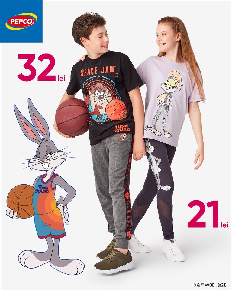 În doar câteva zile va avea loc premiera filmului "Space Jam: A New Legacy" 🏀💫 Pregătește-te cu noua colecție Pepco din Mercur Center la haine pentru copii care cuprinde tricouri din bumbac și pantaloni cu personajele din film. Iar prețurile? Super atractive! 🤩